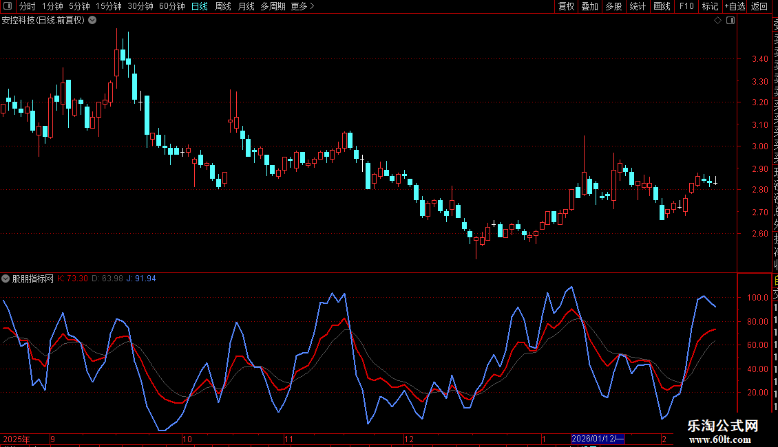指标为KDJ随机指标,用于判断价格超买超卖状态。