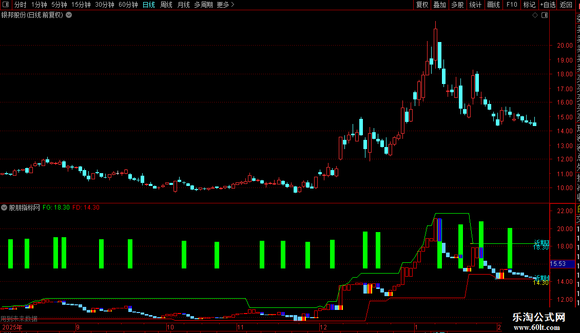 彩色K线及“托底”、“压顶”信号旨在帮助判断短期多空力量的转换点。
