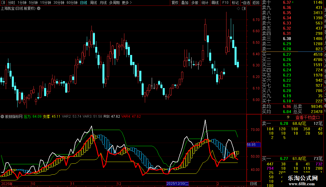 指标基于RSI构建,核心是计算RSI及其短期均线,并识别动态的压力与支撑区域。