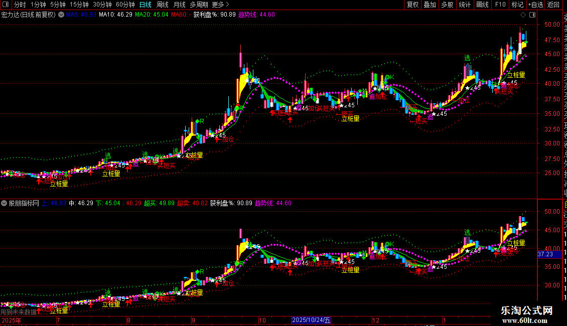 5. 辅助指标:整合了获利盘比例、自定义趋势线、速度与加速度等指标。