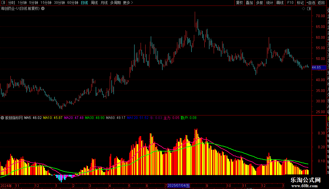 4. 增加“主力”(21日)与“散户”(60日)两条对“牛”线的平滑线,用于观察其短期与中期动向。