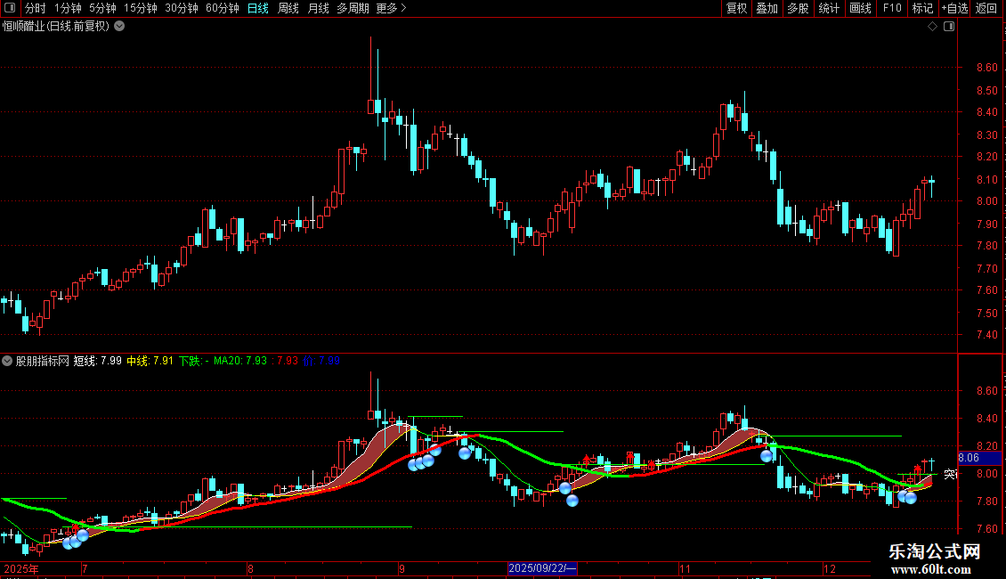 下跌:IF(VAR1=VAR6,VAR6,DRAWNULL),COLORGREEN;