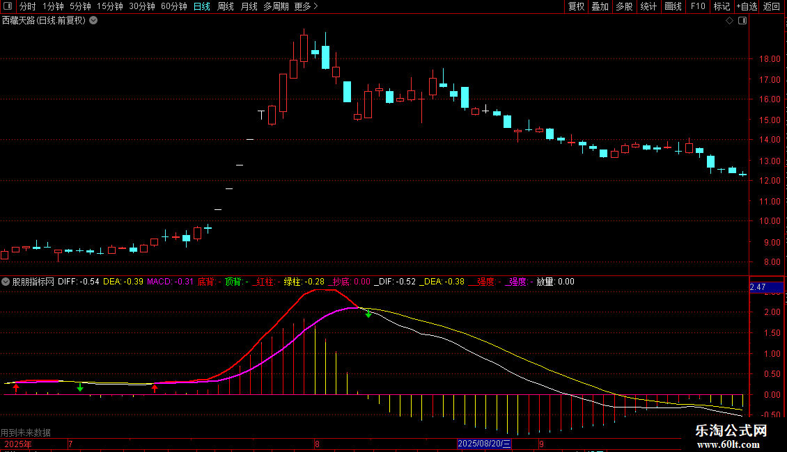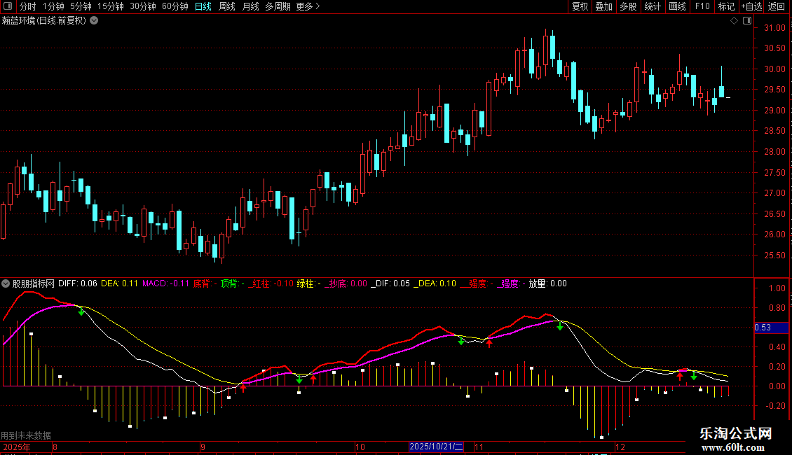 顶背:DRAWLINE(A2=0,DEA,顶背离,DEA,0),COLORGREEN,LINETHICK4;