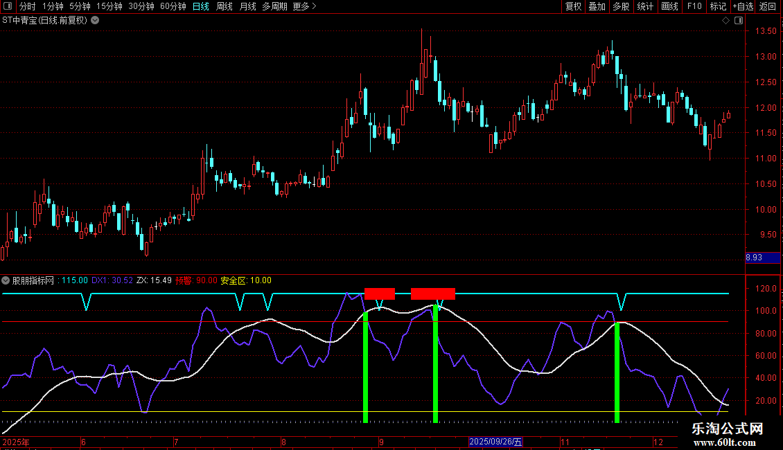DX2:=EMA(DX1,12),COLOR889900,LINETHICK2;