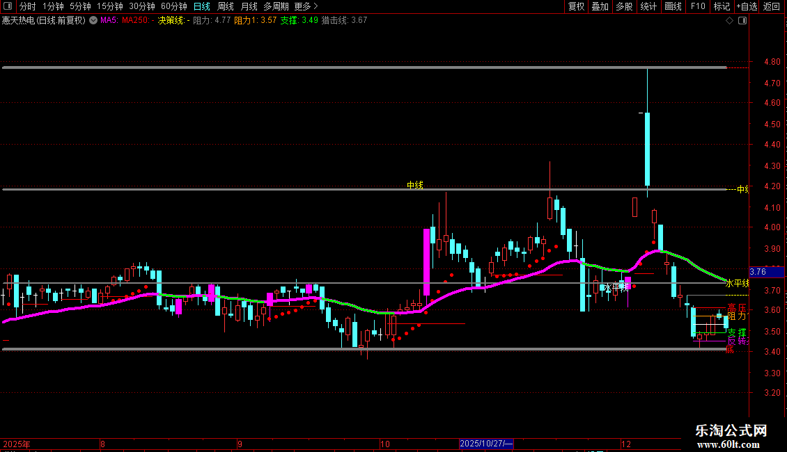 DRAWTEXT(ISLASTBAR,阻力,'----------阻力'),COLORRED,LINETHICK4;