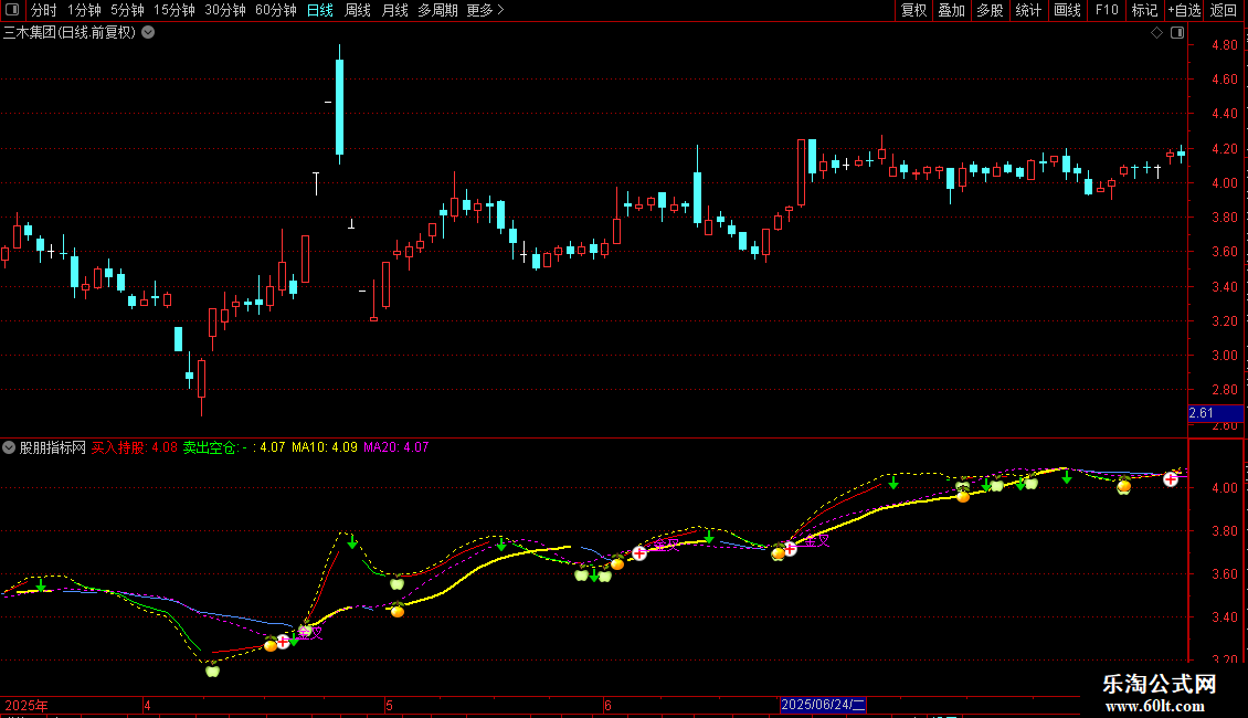 DRAWTEXT(CURRBARSCOUNT=1,MA24,'__24日均线'),COLORGREEN;