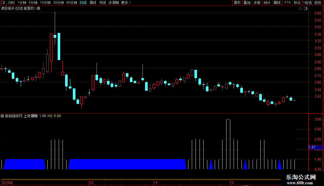 STICKLINE(COUNT(上攻周期>3,5)>=3 AND SG,0,上攻周期,1.5,0),COLORRED;