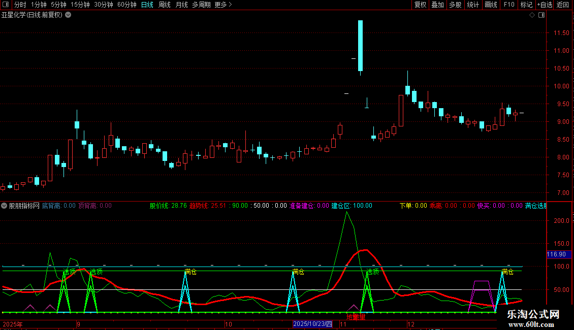 顶背离: IF((VAR26>90),17,0), COLOR6B238E,LINETHICK3;