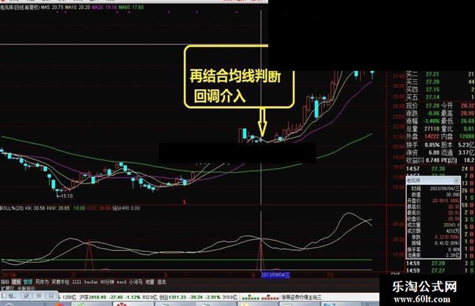 布林指标是通过计算股价的“标准差”,再求股价的“信赖区间”,一般常把它作为股票的运行通道。现在我们微创新一下它的思路:不在把它作为运行通道,而是通过上下通道的距离求得一个差异数,再为该差异数加一条慢线,用两条线的关系结合均线系列得出介入信号。