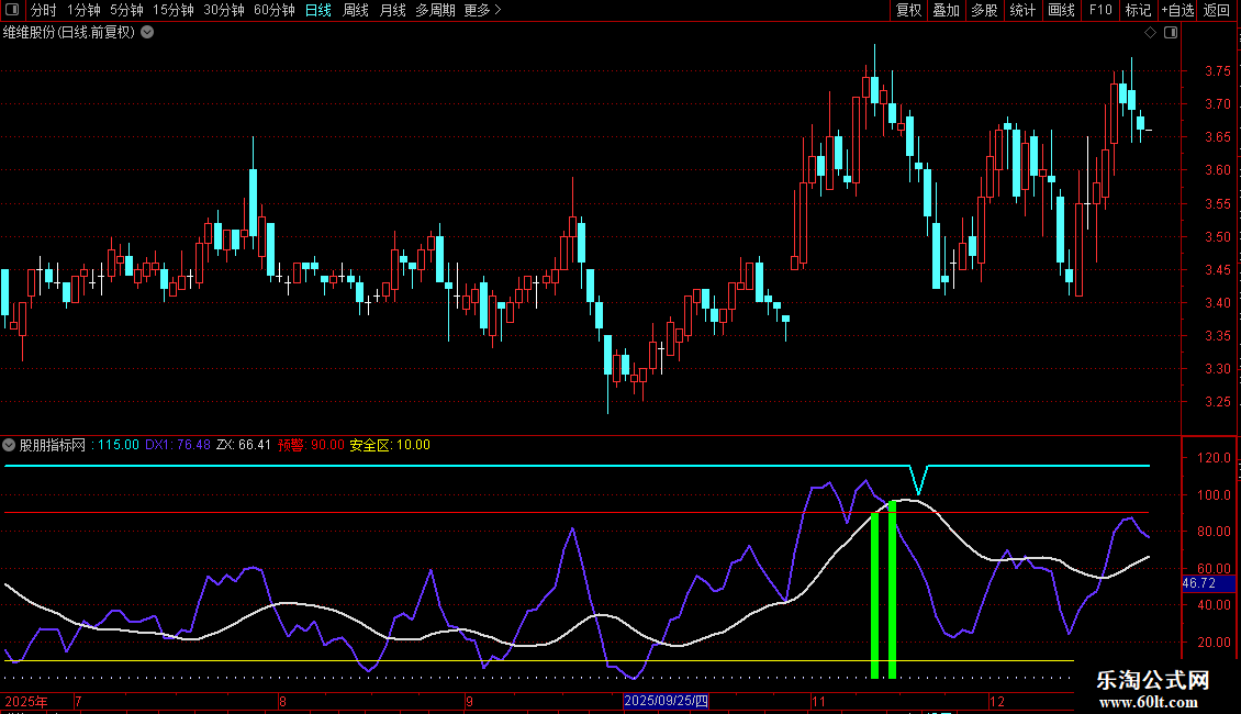 DX2:=EMA(DX1,12),COLOR889900,LINETHICK2;
