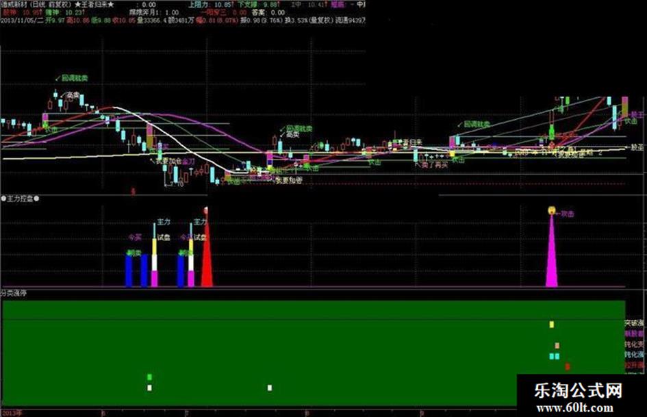 突破涨停:=IF(CROSS(C,A) AND ZT>0,-4,0),COLORYELLOW;