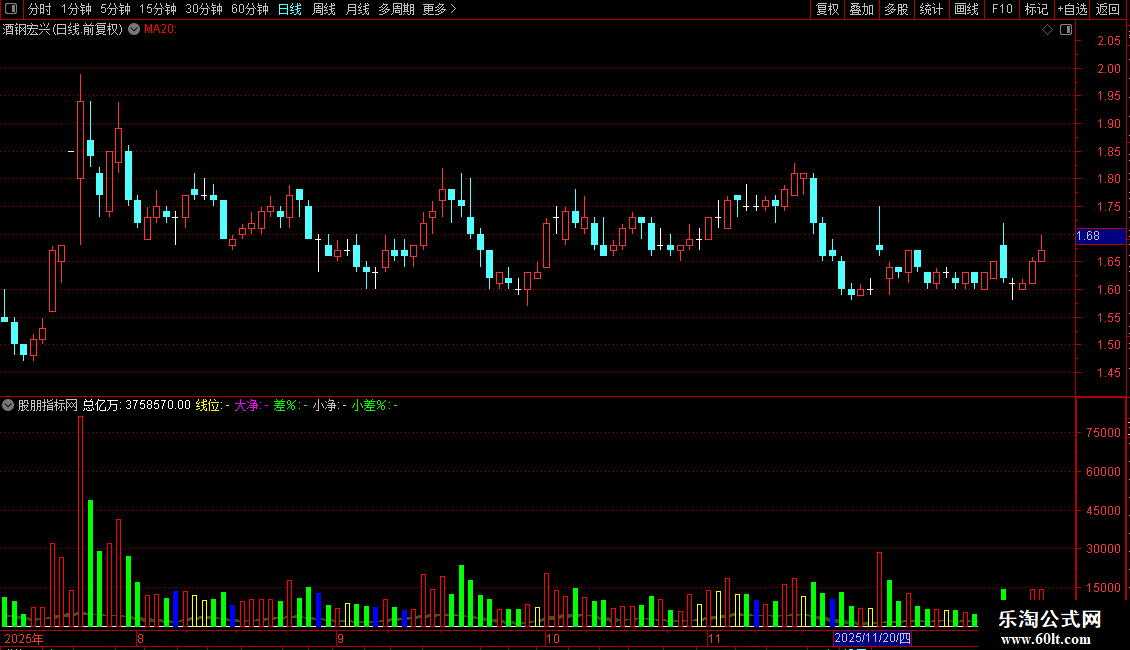 小差%:(正总2-负总2)/(正总2+负总2)*100,COLOR00FF00,NODRAW;