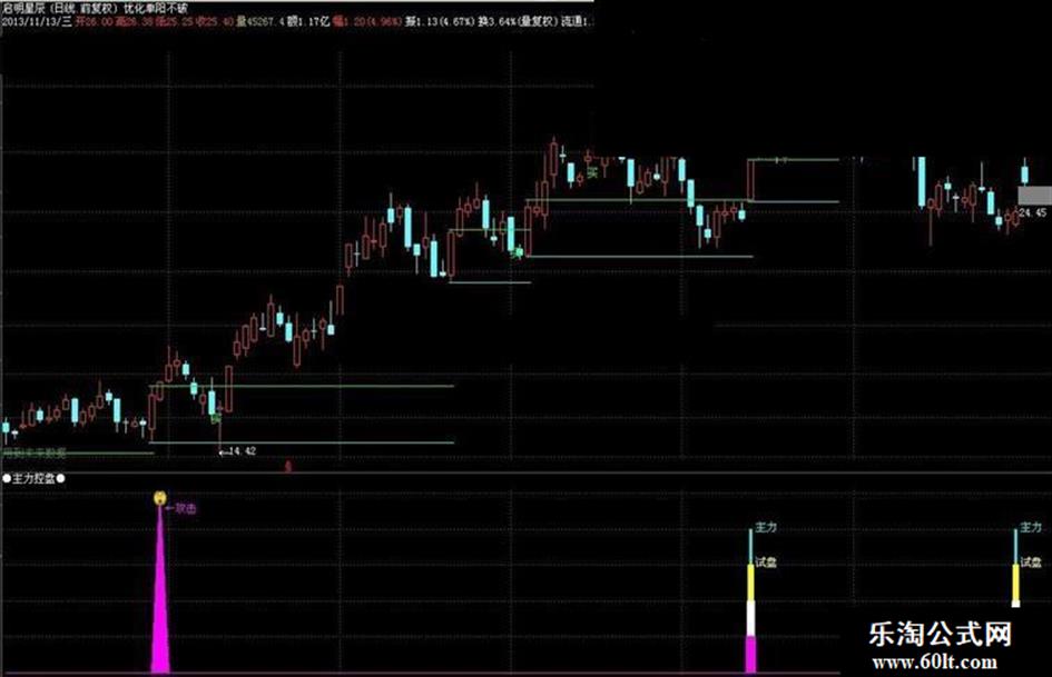 STICKLINE(D3 or (D3 AND C<O AND VOL>MA(VOL,5) AND VOL>MA(VOL,60)),H+0.3,H+0.7,2,0);