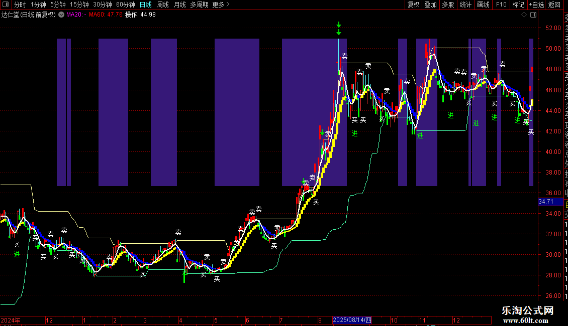 DRAWTEXT(REF(C,1)<D AND C>D AND D<REF(D,1),L*0.98, '买'),COLORWHITE;