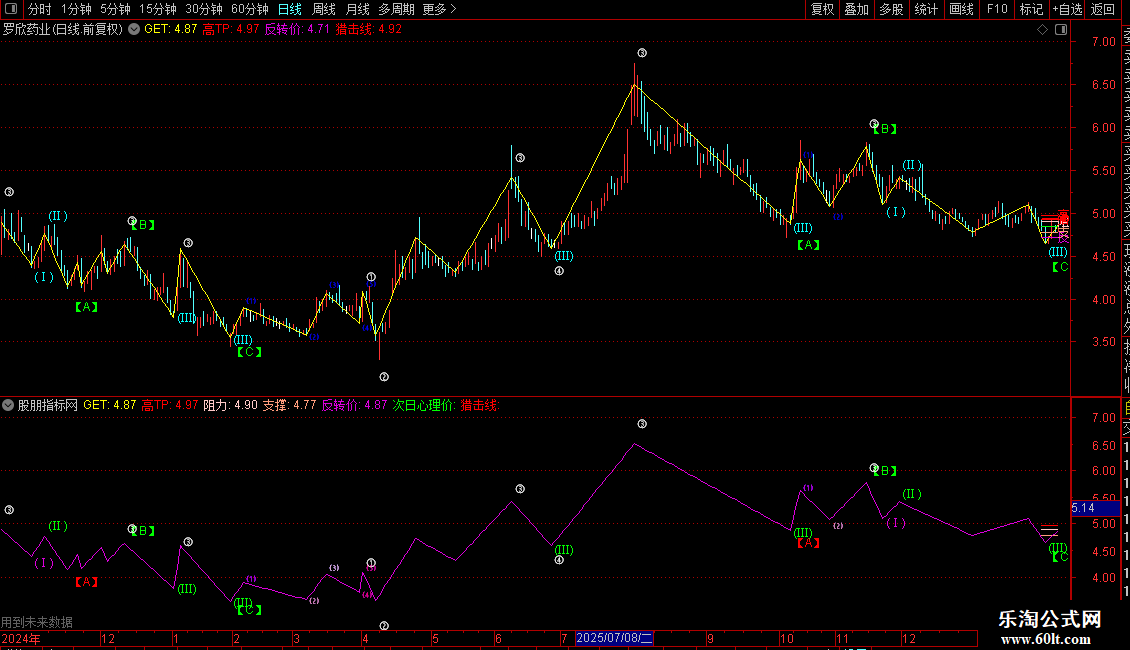 黄色符号:如`(Ⅰ)`、`(Ⅱ)`、`(Ⅲ)`,表示不同周期下的潜在转折区域。