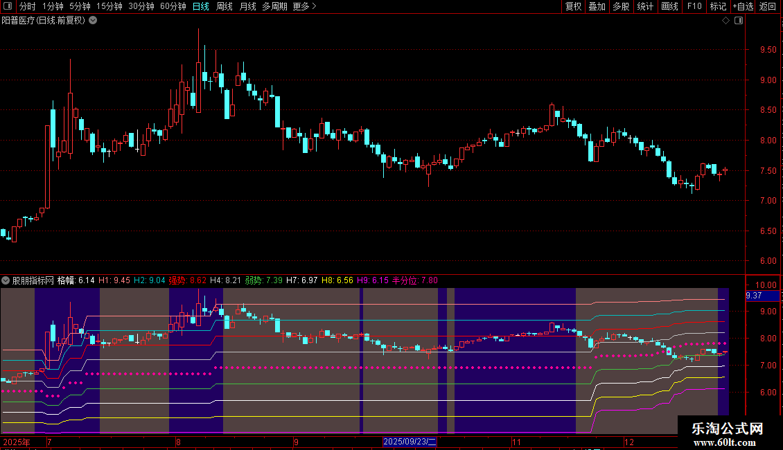 半分位:高-(高-低)*0.55,POINTDOT,LINETHICK4,COLOR9900FF;