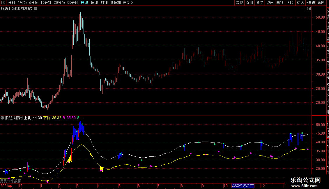 2. 特殊K线标记用于突出显示突破轨道和涨停的K线。