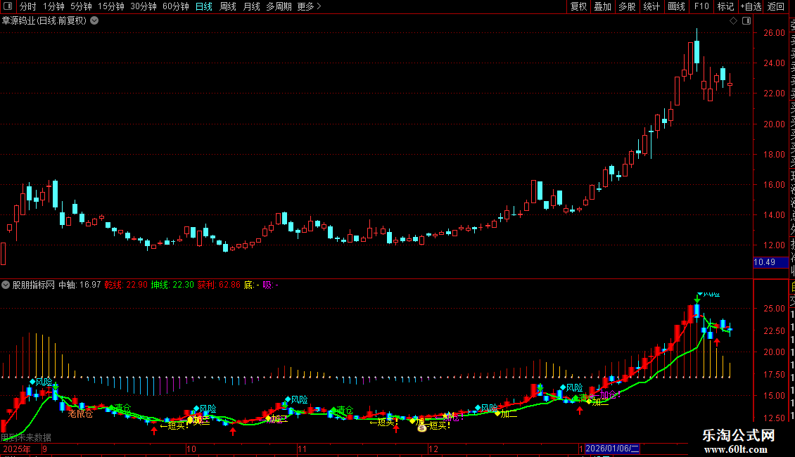 DRAWTEXT(减仓,HIGH*1.02,'◆风险'),COLORCYAN;