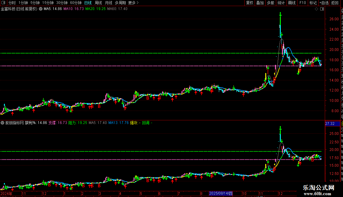 回调:IF(MA3<REF(MA3,1) AND MA3>0,MA13,DRAWNULL),COLORGREEN,LINETHICK2;