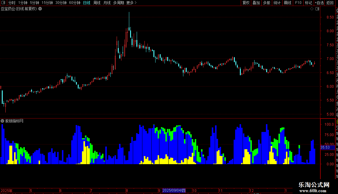 黄色主力出货: STICKLINE(VAR4<0,0,VAR3,2,0),COLORYELLOW;