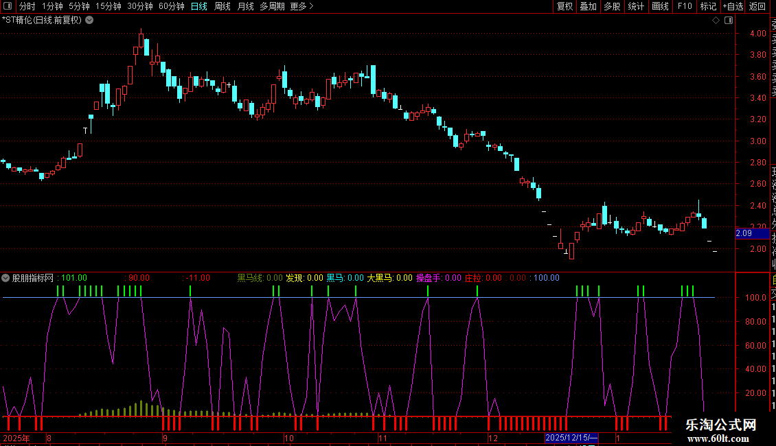 {DRAWTEXT(发现>0,25,'短线黑马2.5%')COLORCC99FF;