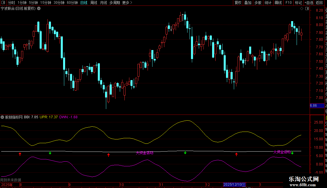 DRAWTEXT(VAR11 AND COUNT(VAR11,30)=1,LOW*0.95,'大资金活动'),LINETHICK1,COLORFF00FF;