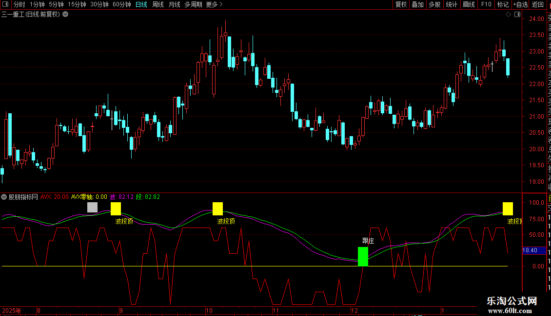 用法:在跟庄图标出现时建仓,在未出现波段顶时来回短炒。在红线下探-(-50) 横盘时补仓,红线上了(+50)后转头向下破线下后应及时减短线仓(如是T高手,一破就走人,逢低再买回,我不是玩T合格高手,我一般破+40后,我就闪),来回玩下短炒。波段线绿线与粉红线过了100时,小心行事了,慢慢减仓。玩短炒一般吃点鱼身是可行的。