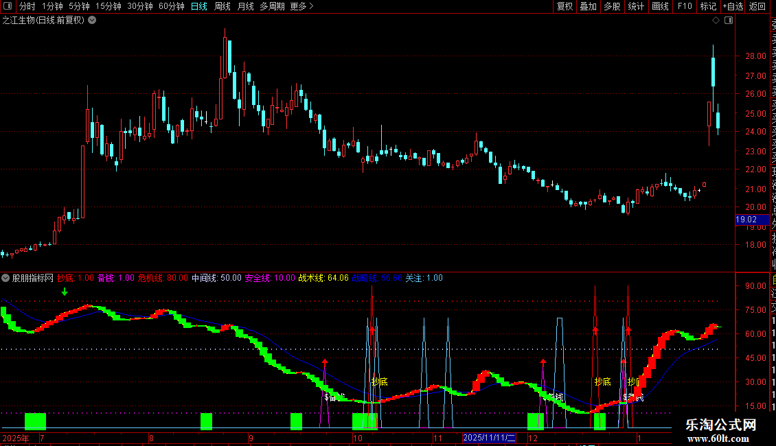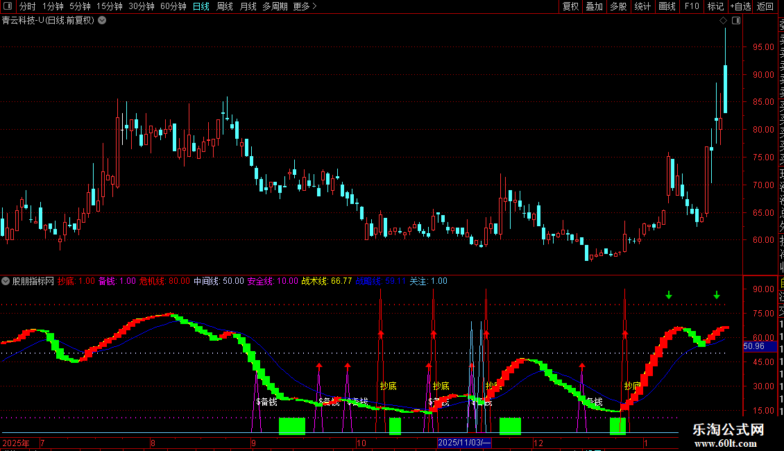 短线逃顶:=IF(I,0,1),COLORGREEN;