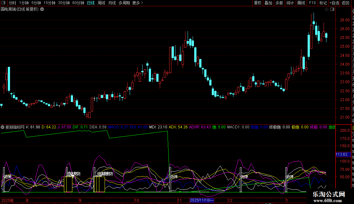 极炮: REF(K<D,1) AND K>D AND PDI>MDI AND REF( PDI > MDI,1) AND REF( PDI<MDI,2);