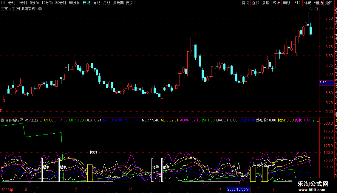 终极炮: REF(K<D,1) AND K>D AND K>80 AND PDI>ADX>ADXR;