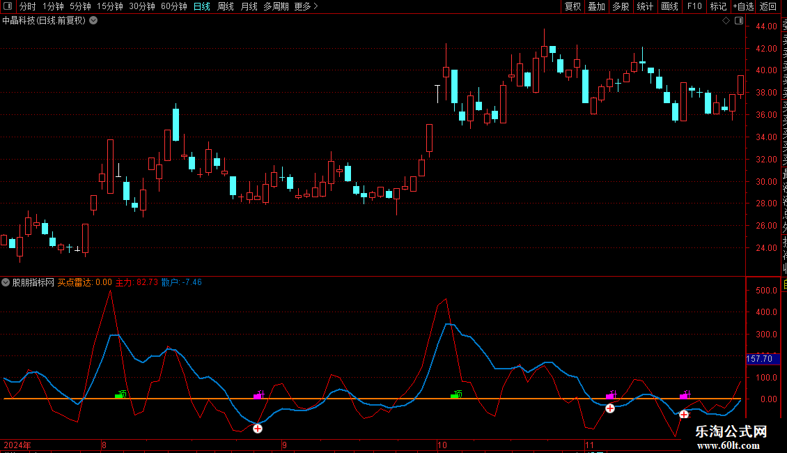 2、图中蓝线代表散户监控线,红线主力表示监控线;