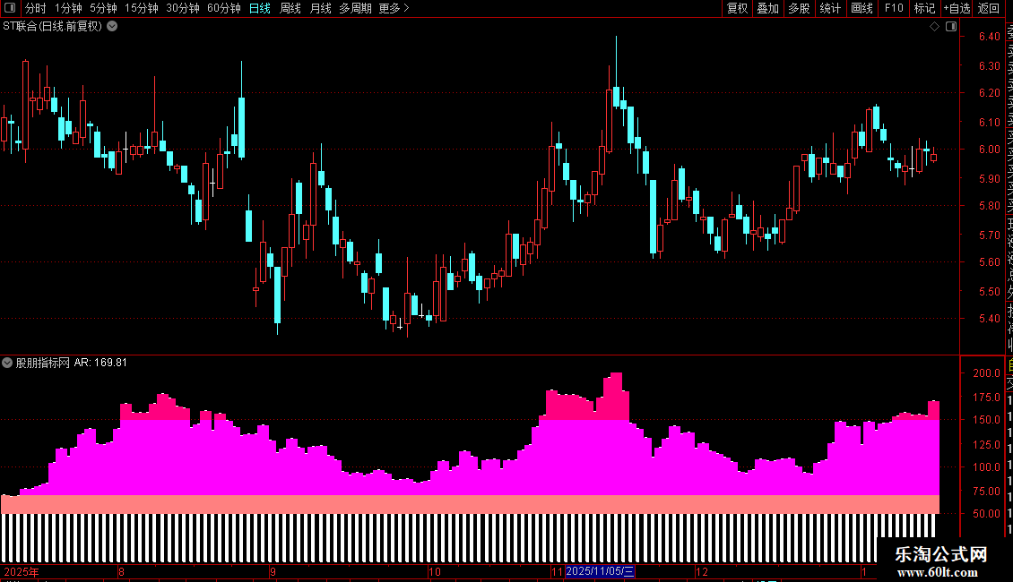 AR :SUM(HIGH-OPEN,N)/SUM(OPEN-LOW,N)*100,STICK,COLORWHITE,LINETHICK4;