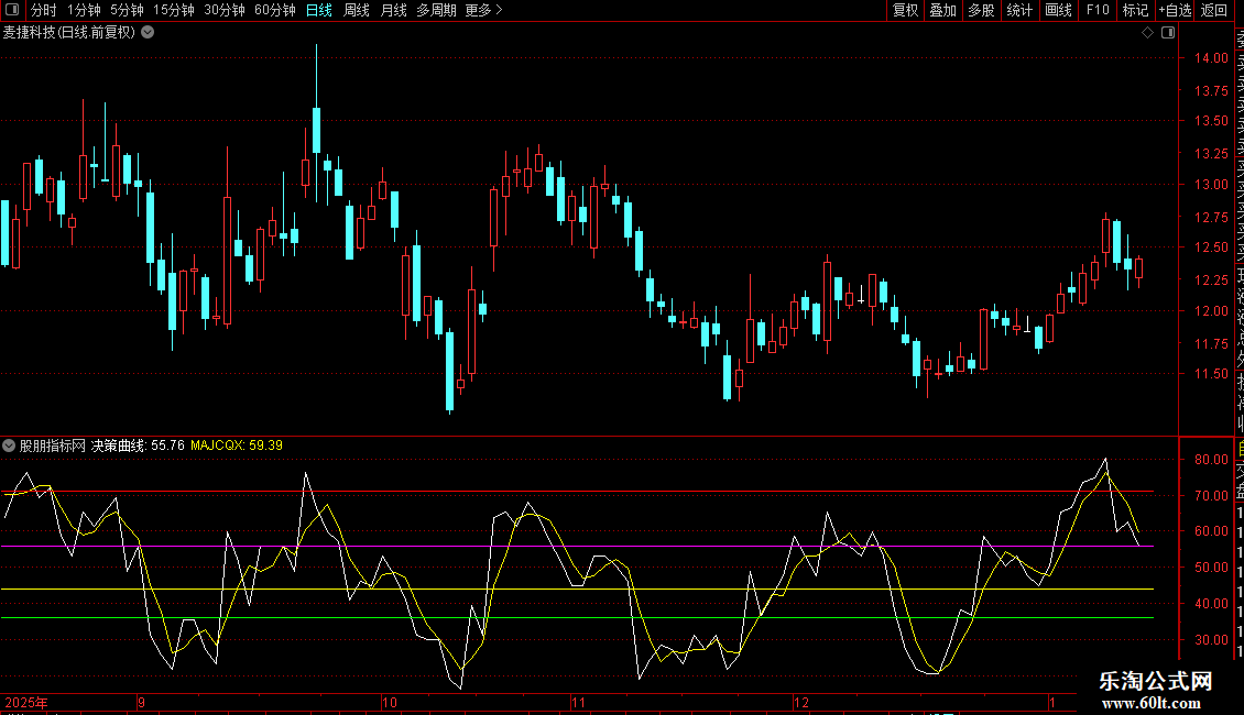 为了避免单一指标过于主观的信息,因此,融合了数十种技术指标,将其所有指标信号组合成“决策曲线”,这条“决策曲线”属于所有指标共同对当前股价波动的见解,从逻辑上说,它是一条最客观的指标曲线。