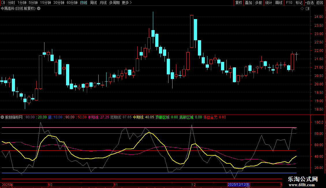 顶部区域:(中期线<REF(中期线,1) AND REF(中期线,1)>80) AND (REF(短期线,1)>95 OR REF(短期线,2)>95 ) AND 长期线>60 AND 短期线<83.5
