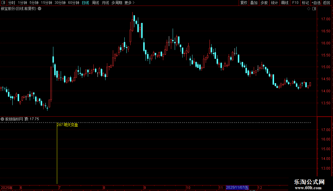 DRAWTEXT(成立距今=(32*9)-1,高-高*0.016,'287 明天变盘'),COLORYELLOW;