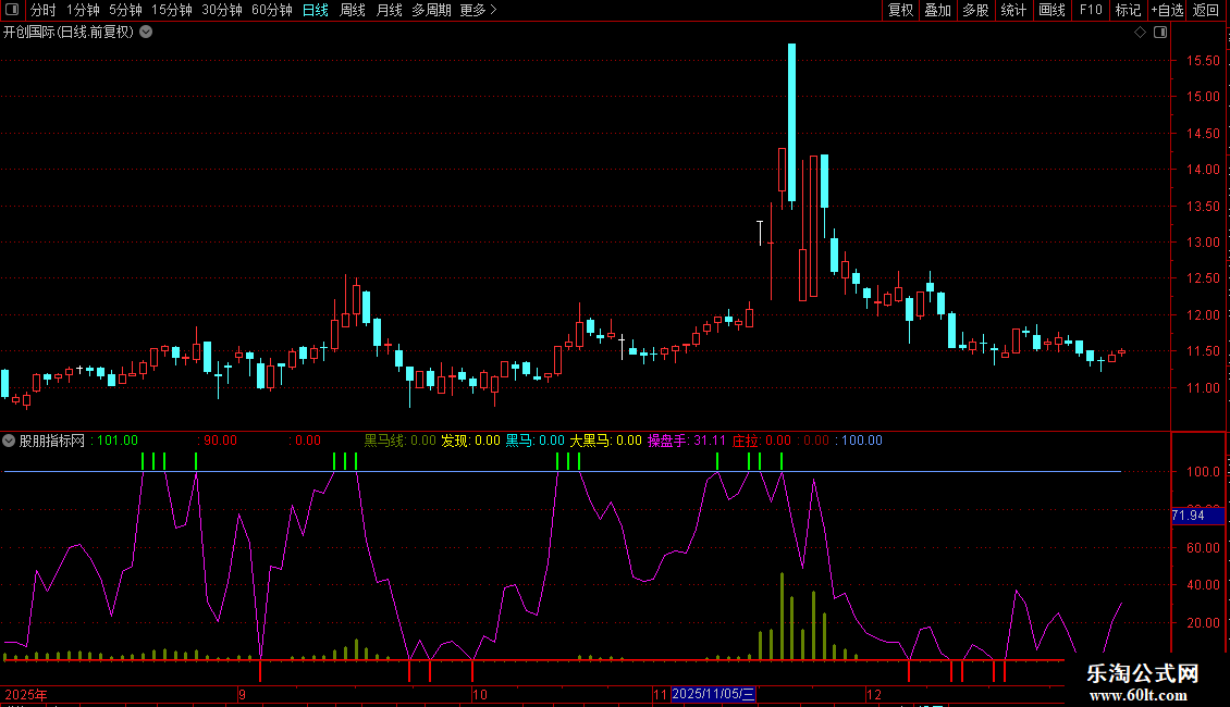 {DRAWTEXT(发现>0,25,'短线黑马2.5%')COLORCC99FF;