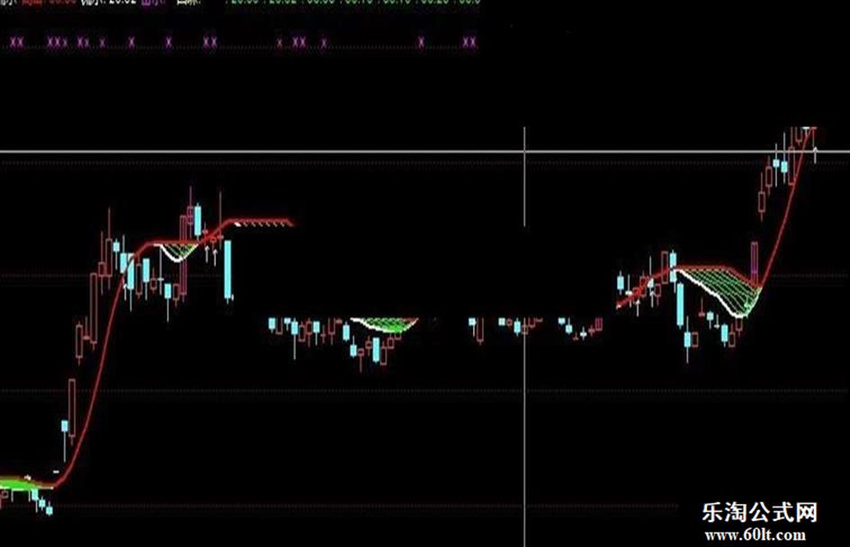 出水:IF(C>HHV(MA(H,N),8) AND HHV(MA(H,N),8)>MA(H,N),1,DRAWNULL),COLORFF00FF,POINTDOT,NODRAW;