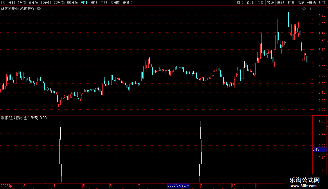 金牛出现: RR AND NOT(REF(RR,1)) AND (RR1<-100 AND BB1<-100) AND CB1<-100 AND VAR19=1;