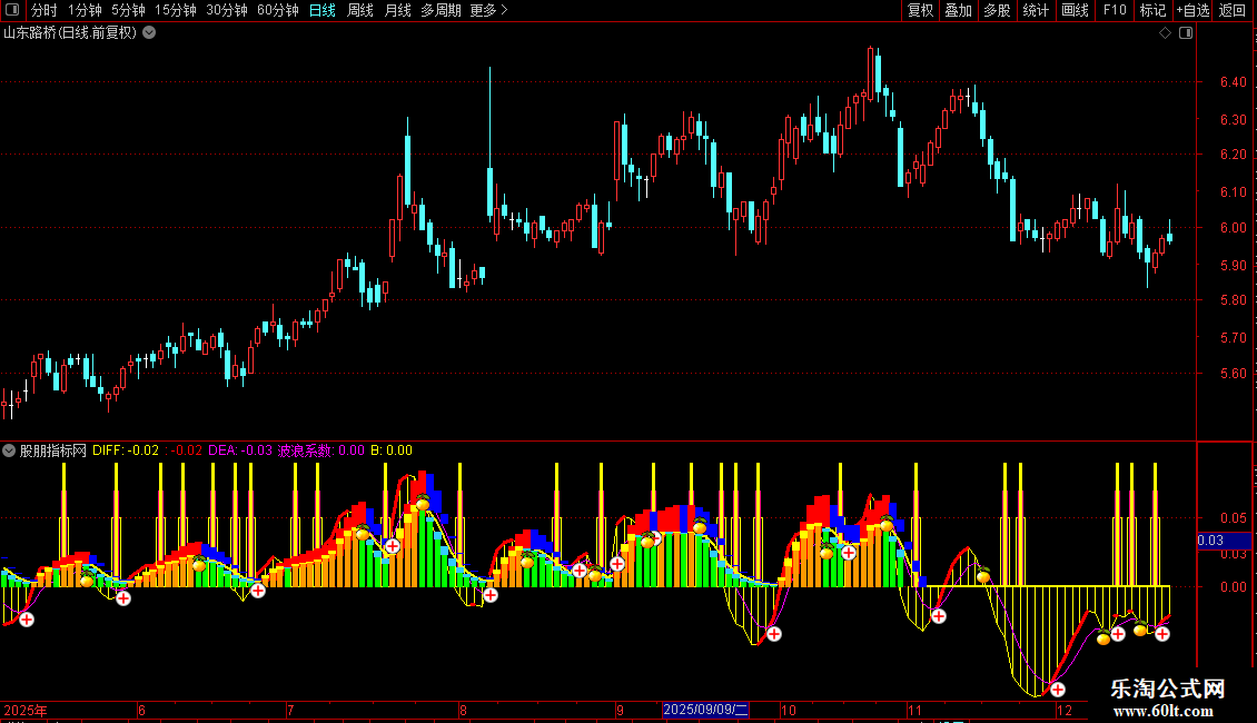 STICKLINE(crOSS(MA(A,1),G),0.05,0,4,1),COLORYELLOW,LINETHICK2;{选股信号:结合线下DIFF看}