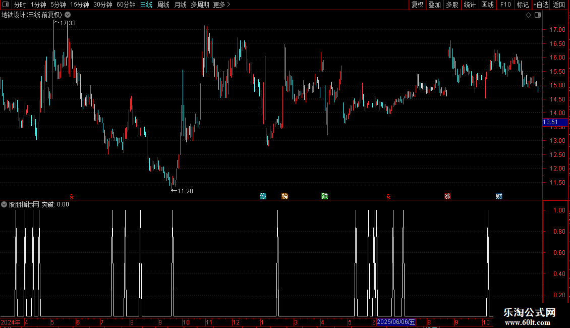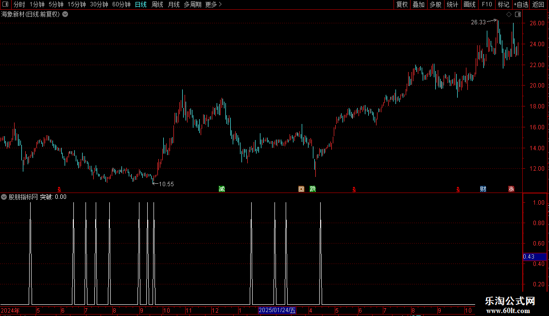 黑马线:=EMA(A1,5),LINETHICK2,COLOR6600FF;