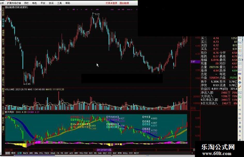 DRAWNUMBER(T2=1 AND CURRBARSCOUNT=N1-12 AND PERIOD=5,AAA-(AAA*TS2),CONST(套牢盘%)),COLOR00FF00;