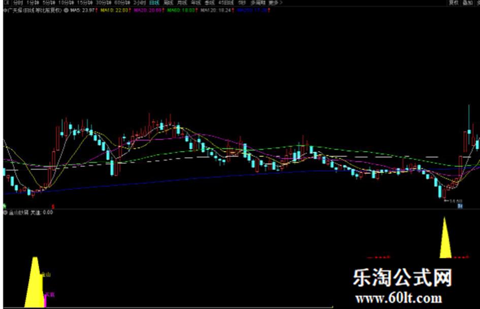 DRAWTEXT(CROSS(38,关注) AND 关注<REF(关注,1),18,'倾买'),COLORRED;