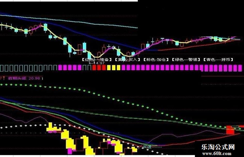 DRAWTEXT_FIX(1,0.5,0.8,0,'【红色----准备】【黄色-买入】【粉色-加仓】【绿色---警惕】【青色----持币】'),COLORFFFFFF;