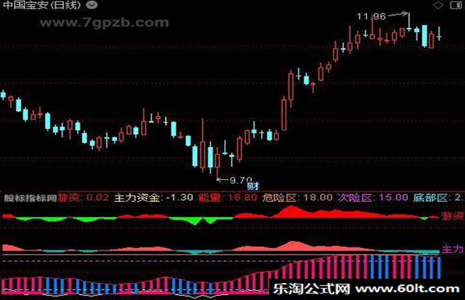 底部区: IF(VAR4>0 AND VAR7<-12 AND CLOSE/OPEN>1.07,300,200)/100,COLORFFFF00,DOTLINE;