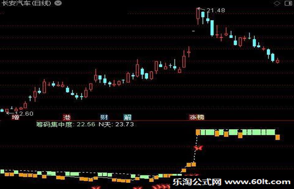 N天:HHV(筹码集中度,21),DOTLINE,COLORFFFFF0;