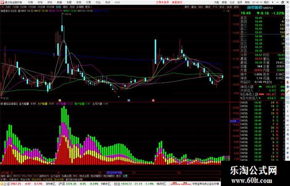 主力能量柱:STICKLINE(主力能量,0,Abs(主力能量),2,0),COLORRED;大户能量:(大户-均量),NODRAW;