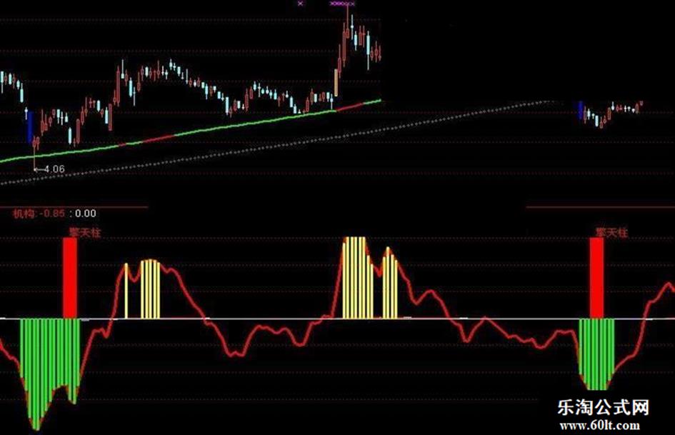 主力线下方出现绿柱表示有大资金进入,出现绿柱的同时主力线上方出现红柱及“擎天柱”字样表示可以介入;主力线上方出现黄柱表示准备冲顶,应当择机获利了结,规避风险。