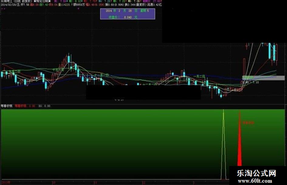 {DRAWTEXT(D=M AND K=1,H*1.1,'↓ 收盘价(元)')COLORMAGENTA};