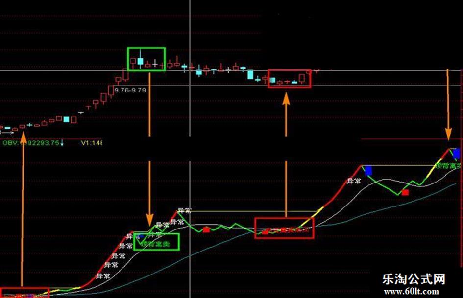 DRAWTEXT((((ABS((OBV - REF(OBV,1))) / ABS(MA(OBV,5))) > 0.07) AND (OBV > REF(OBV,1))),OBV,'异常');
