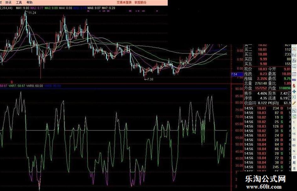 VAR4:((SMA(MAX((CLOSE - VAR3),0),6,1) / SMA(ABS((CLOSE - VAR3)),6,1)) * 100);